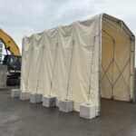 伸縮式テント倉庫(ジャバラテント・レール式)を産業施設屋外に施工