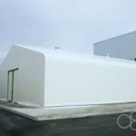 テント倉庫は、柱のない大空間を作り、補完物の配置や移動などの自由度の高い業務スペースを実現するテント製の倉庫です。出入口も大きくとることができ、重機や運搬時の出入りもスムーズです。