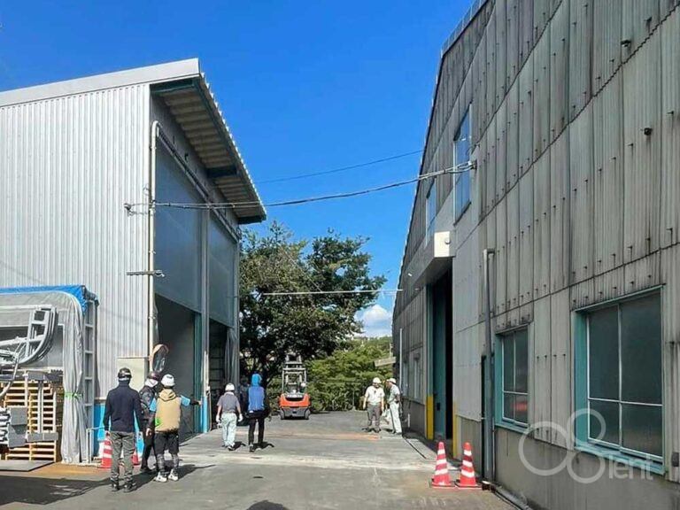 大型ジャバラテントを工場間通路として施工|愛知県常滑市