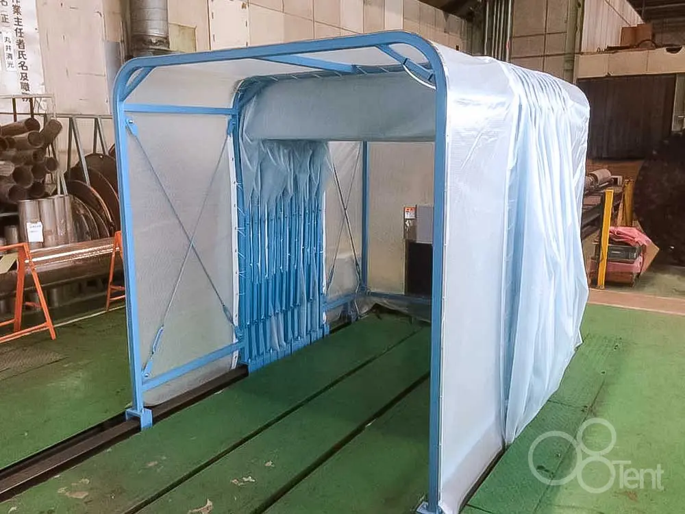 キャスター式ジャバラテントの施工詳細 キャスター式ジャバラテントを施工いたしました。
